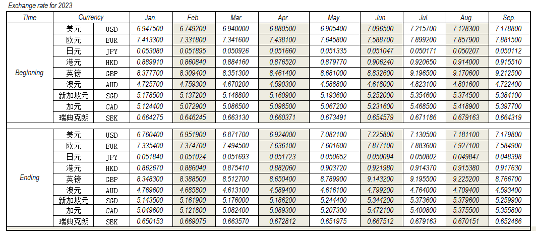 2023年9月外匯匯率,來源中國人民銀行供參考。